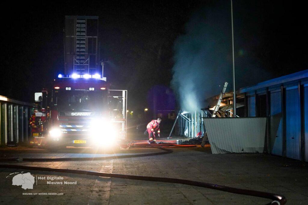 Stadskanaal – In de nacht van vrijdag op zaterdag is in Stadskanaal brand uitgebroken in een rij garageboxen aan de Vlaanderenlaan. Rond 01.35 uur schaalde de brandweer op naar middelbrand, waarna een tweede blusvoertuig ter plaatse kwam.