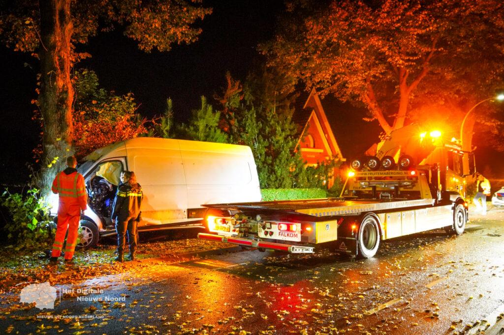Westerlee – Op de Hoofdweg in Westerlee heeft vrijdagavond een eenzijdig ongeval plaatsgevonden. Een bestelbus reed met hoge snelheid tegen een boom.