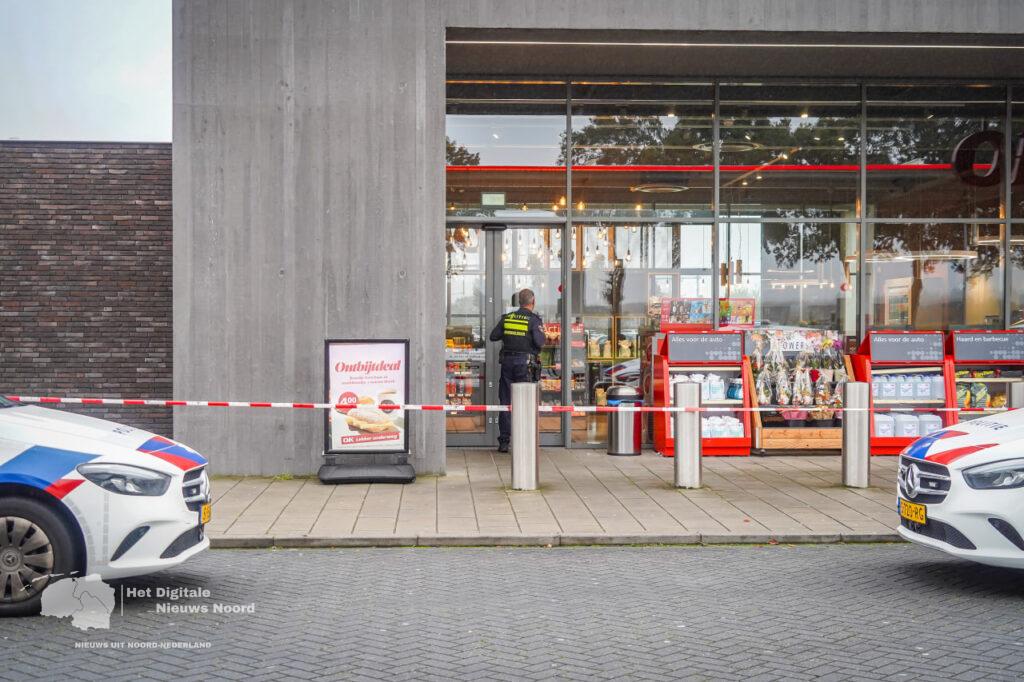De politie is direct een zoekactie gestart en maakt daarbij gebruik van een speurhond. Het gebied rondom het tankstation is ruim afgezet voor onderzoek.