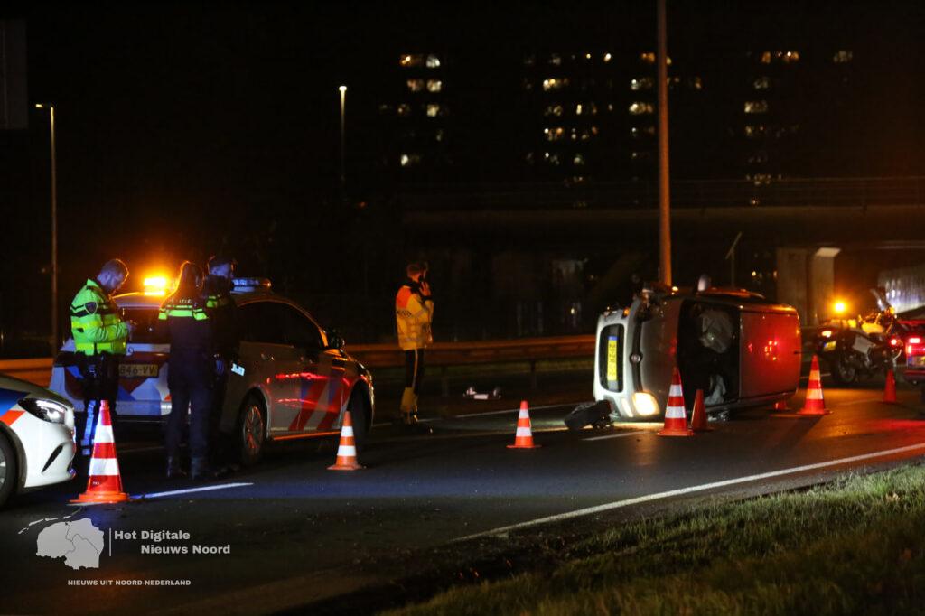 Groningen – Vrijdagavond is er een voertuig tegen de vangrail gereden op de N370 en gekanteld.