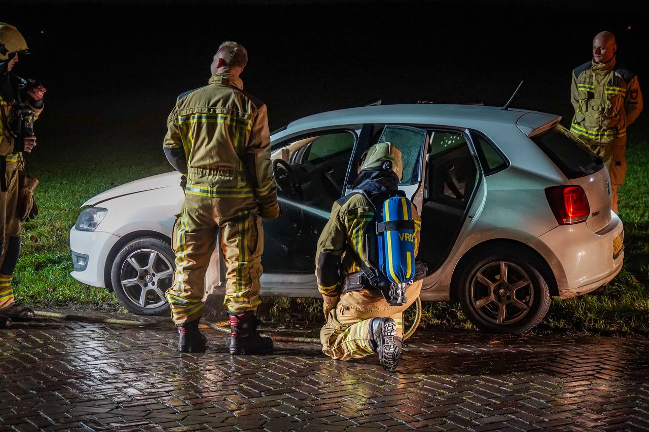 De inzittenden konden het voertuig veilig verlaten, waarna de brandweer het vuur snel wist te beperken. Hoewel het interieur flinke schade opliep, raakte niemand gewond en is de oorzaak nog onbekend.