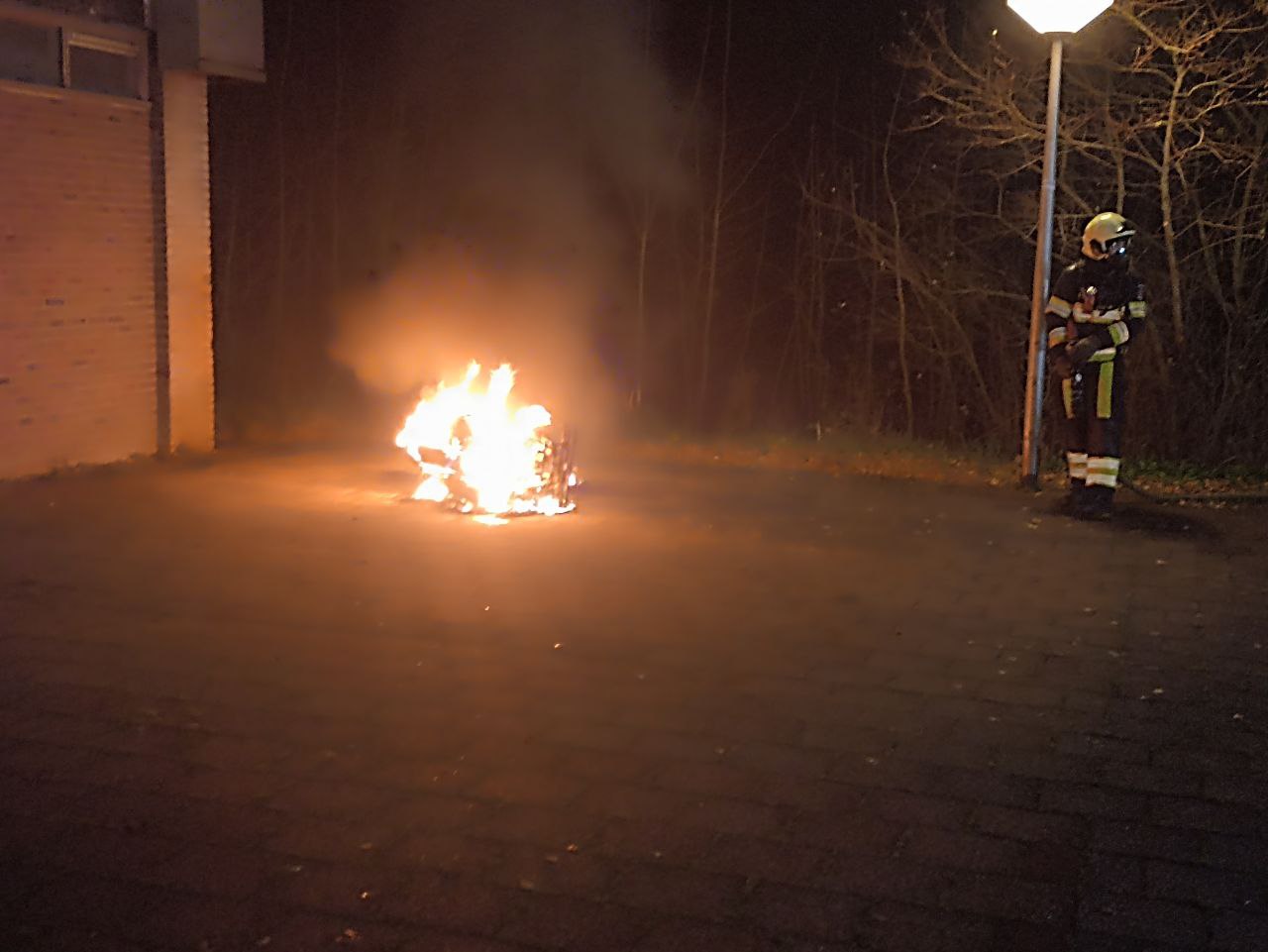De vrijwilligers van de brandweer kwamen ter plaatse, waar de politie al aanwezig was, en de brandweer had het vuur snel onder controle. De scooter brandde volledig uit; de oorzaak van de brand is nog onbekend.