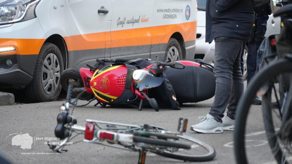 Groningen – Op de kruising van de Oosterweg en de Warmoesstraat heeft zich donderdag een forse aanrijding voorgedaan tussen een scooter en een fietser. Bij het ongeluk raakte de bestuurder van de scooter gewond.