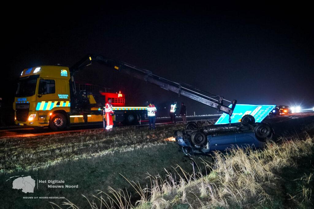 Het ongeval zorgde voor verkeershinder op de N33. De auto is door een bergingsbedrijf uit de sloot gehaald en afgevoerd. De politie onderzoekt hoe het ongeval heeft kunnen gebeuren.