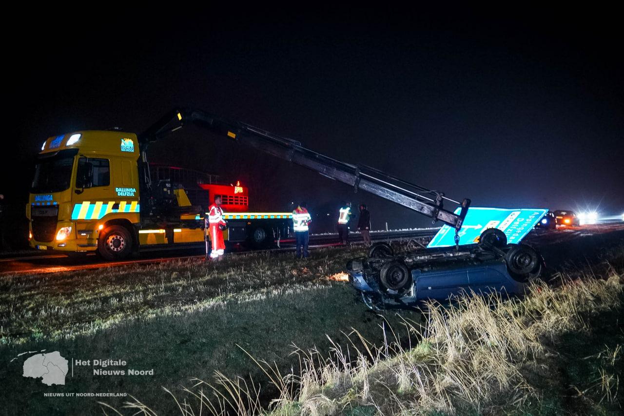Het ongeval zorgde voor verkeershinder op de N33. De auto is door een bergingsbedrijf uit de sloot gehaald en afgevoerd. De politie onderzoekt hoe het ongeval heeft kunnen gebeuren.