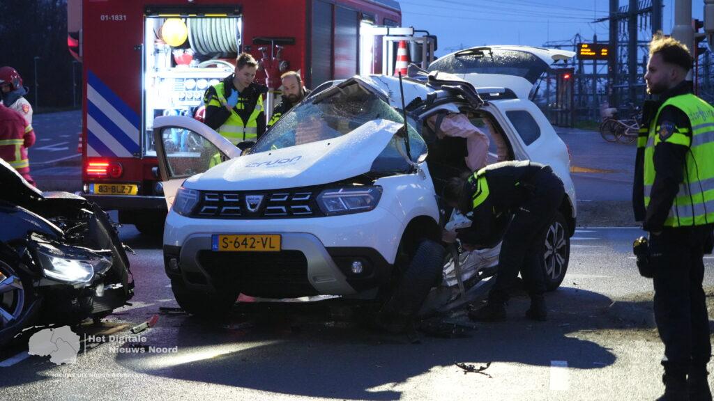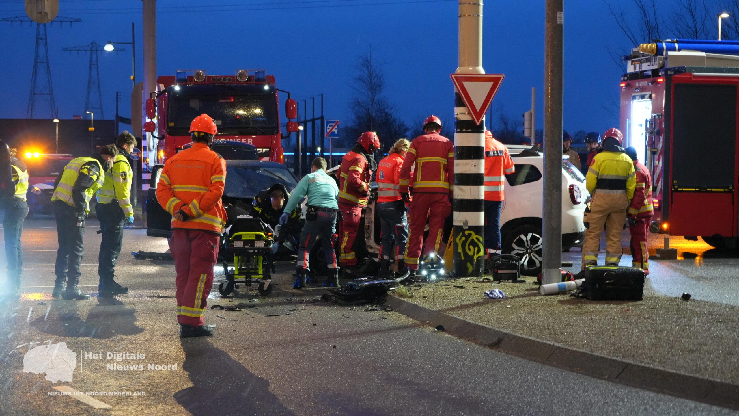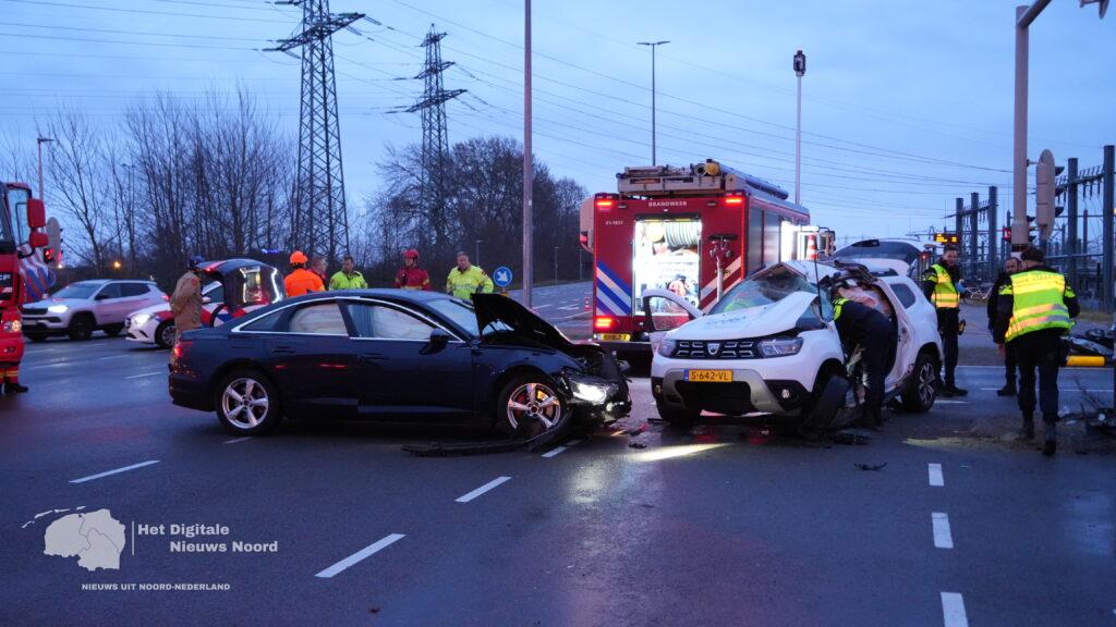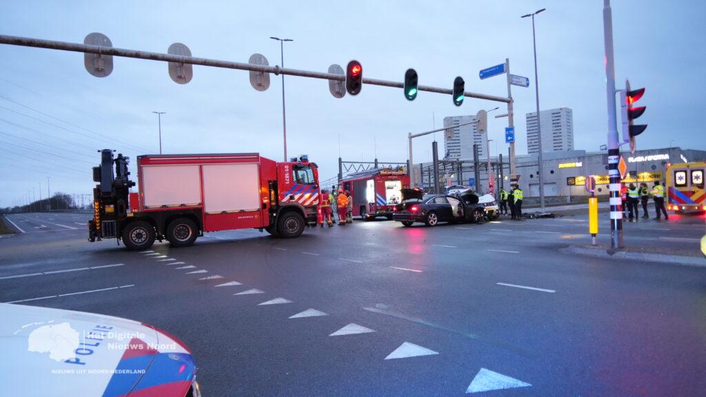 Groningen – Op de kruising van de Europaweg met de Boumaboulevard in Groningen heeft een zeer ernstig verkeersongeval plaatsgevonden tussen twee voertuigen. Meerdere hulpdiensten, waaronder politie, ambulance en brandweer, kwamen met spoed ter plaatse.